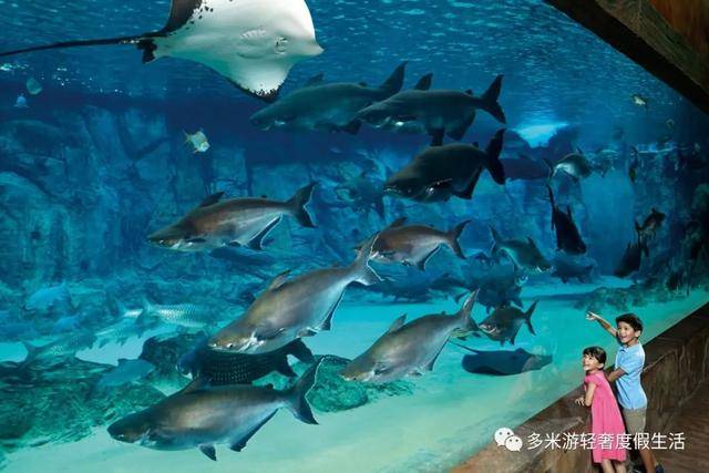 SEA海洋馆号称是是全球最大的水族世界。与200只鲨鱼仅有一‘玻璃墙’之隔,再加上超过800多种其他海洋生物的斑斓色彩,也是够小孩们欢跃一整天的了。