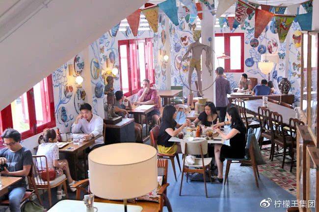 当天晚餐回到牛车水附近很有名的东亚餐室楼上,这是一间利用东方色彩呈现美式复古插画的餐厅。