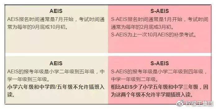 1. AEIS与S-AEIS的区别两个考试都是新加坡政府中小学国际学生统一入学考试。S-AEIS 简直就是没有顺利通过 AEIS 考试,或者错过头年 AEIS 考试考生的一大福音,可以通过补充考试 S-AEIS 进入新加坡公立中小学插班读书。