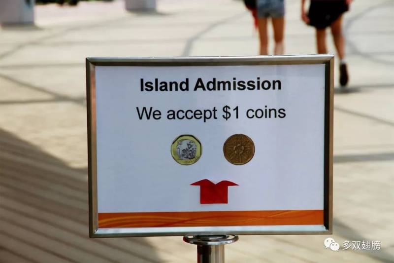 步行上圣淘沙是很悠闲的方式,曾几何时我们步行上圣淘沙还是需要1元新币的,而且必须是硬币,我当年特地拍下照片来以提示这个攻略,没想到现在已经免费了。这条步道由很多步行电梯连接,头顶也是有蓬遮阳的,路上风景也不赖,悠闲地走上15分钟就到了,不失为上岛的好途径。