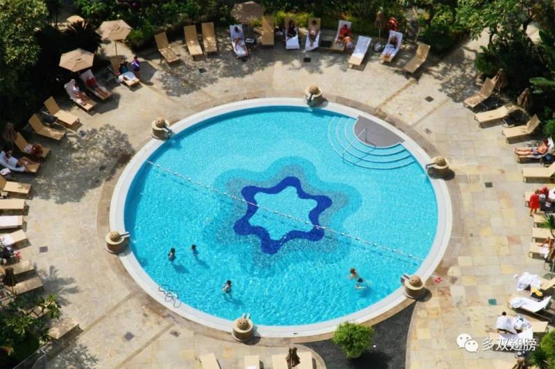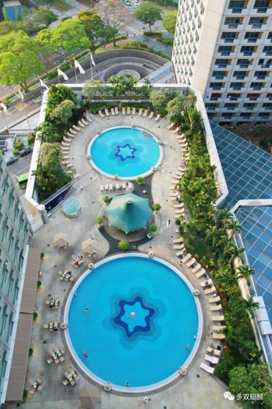 地铁红线和绿线交汇的City Hall站,出站就是费尔蒙酒店了,普通的房型也能看到不错的景观,出了酒店就是新加坡历史最悠久的莱佛士酒店(下图中的白色建筑),而最让我们喜欢的是他们家的泳池,从上往下看简直是种享受。由于对这个位置印象极好,我们二刷新加坡选择了住它隔壁的史丹佛瑞士酒店。