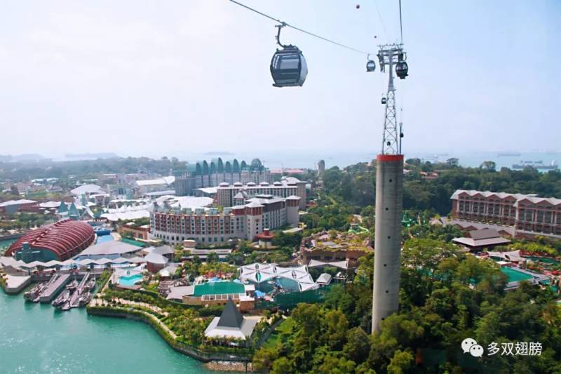 坐缆车上圣淘沙岛,最贵,也比较折腾,但是看到的风光无限好。所以我们第一次上岛就选择了这种不试过会后悔的方式。一路上的风景还是很值的,看到了上帝视角的圣淘沙,捕捉到了圣淘沙水上探险乐园的全貌。(平常妈妈一直黑得油光蹭亮,捂了一个冬天后,白得不需要美颜。)