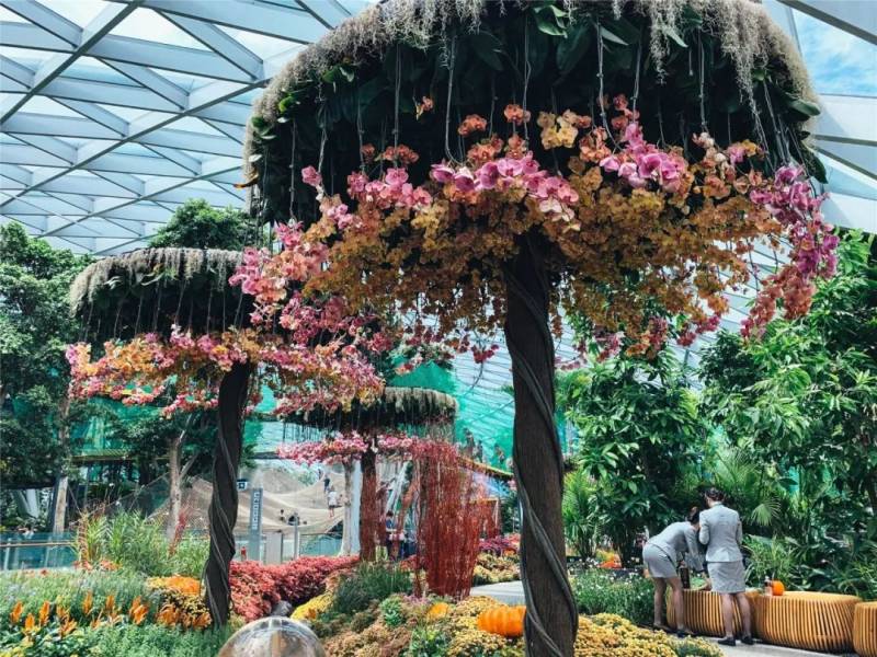 整个滨海湾公园,几乎就是花园城市这个名片的展示区。除了两个室内场馆,还有天空树和大大小小不同的植物展示区,但由于在室外,又热又潮湿,且魔王来的季节是雨季,动不动就来一场雷阵雨,这些室外场景只能放弃了。