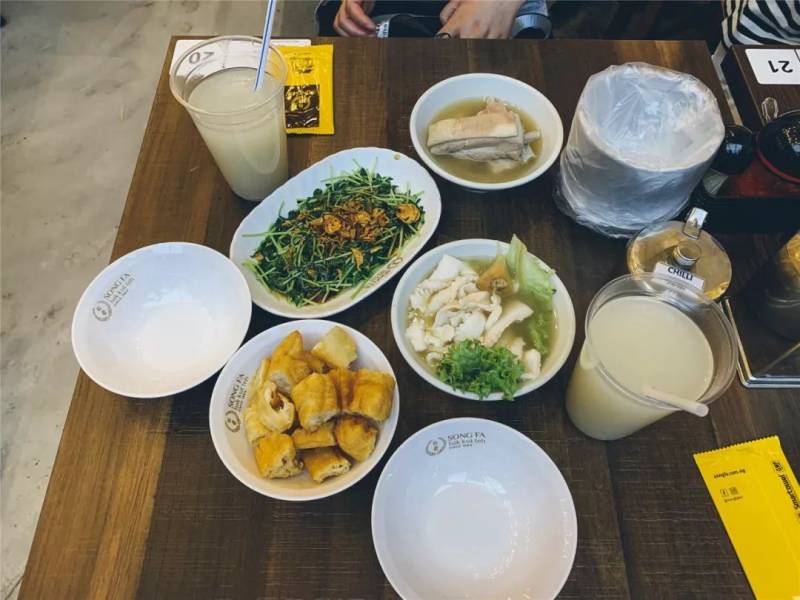 店面不是很大,所以显得略挤。好在翻台速度很快,所以外面排队的时间不会太长。推荐薏米水饮料,蛮适合潮热多湿的新加坡气候。肉骨茶除了肉的香气,还有强烈的胡椒味,据说也是当年南下的华人为了适应东南亚气候改进而来的。