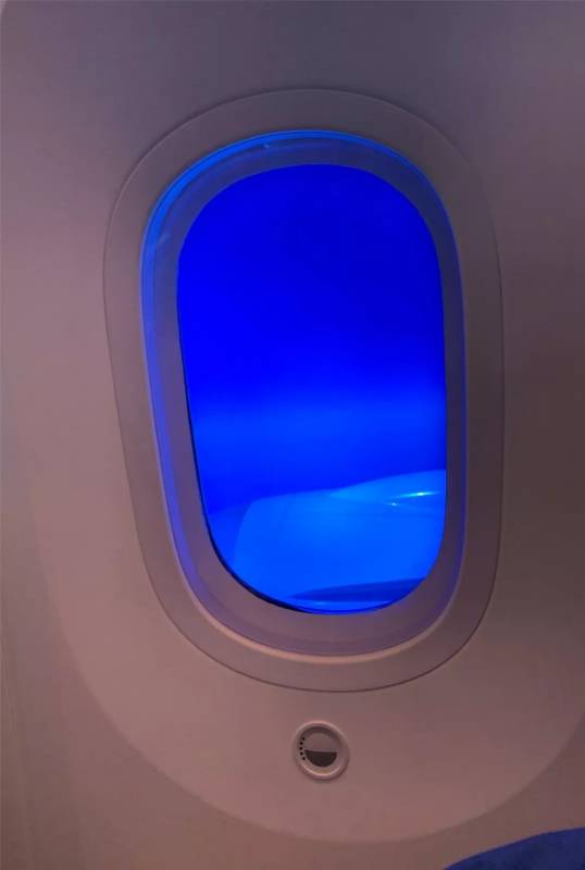 波音787的客舱窗户和777一样大,和320 330比简直是巨大。而且787没有遮阳板,客舱窗户是电控遮阳,由机组直接控制,避免了空姐经常来提醒升起遮阳板的麻烦。只不过这种设置对喜欢在天上拍片的人来说会造成很大困扰,白平衡肯定是飘到天上去了。