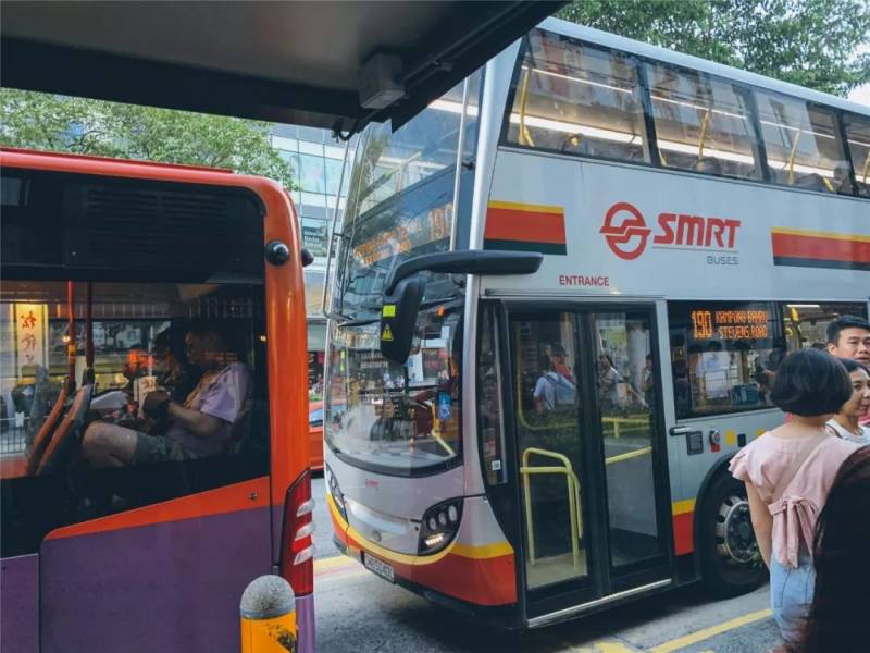 除了地铁出行,还可以用交通卡坐公交车。乘坐方法和上海有一些区别。首先要在前门上车刷卡,然后在后门下车前还要再刷一下卡,不然会被扣最高车票价。此外新加坡的公交车需要自己按下车按钮,不然司机可能不会停车。