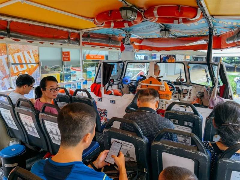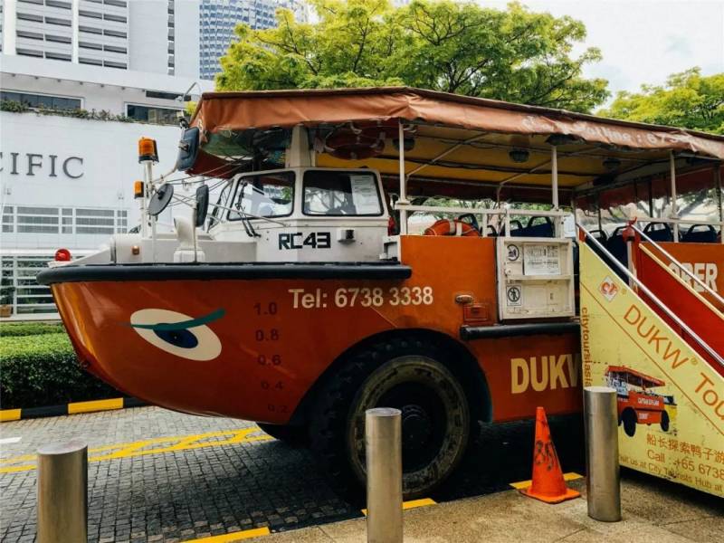 这个美军当年在太平洋战争期间为了运送士兵而建造的水陆两栖运兵车,在战争结束后被新加坡人用来观光的交通工具。由于是四十年代的建造技术,所以整个车船身略显古老,行驶在马路上颠簸感非常强。不过一旦下水后,感观和普通船没有什么两样。