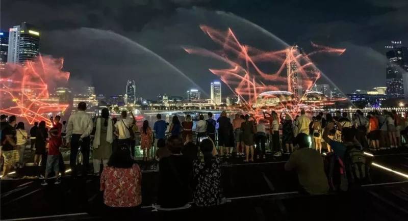 要想近距离观看鱼尾狮喷泉,沿着港湾步行是个不错的选择。在不远处就是被吐槽为榴梿的新加坡艺术中心。而在港湾对面,则是著名的滨海湾金沙酒店和滨海湾购物中心,每天晚上8点和9点,在滨海湾购物中心面向鱼尾狮喷泉的岸边会有激光喷泉音乐秀。在鱼尾狮喷泉这里观看喷泉音乐秀可以看到金沙酒店顶楼的激光打在港湾水面上的图案。