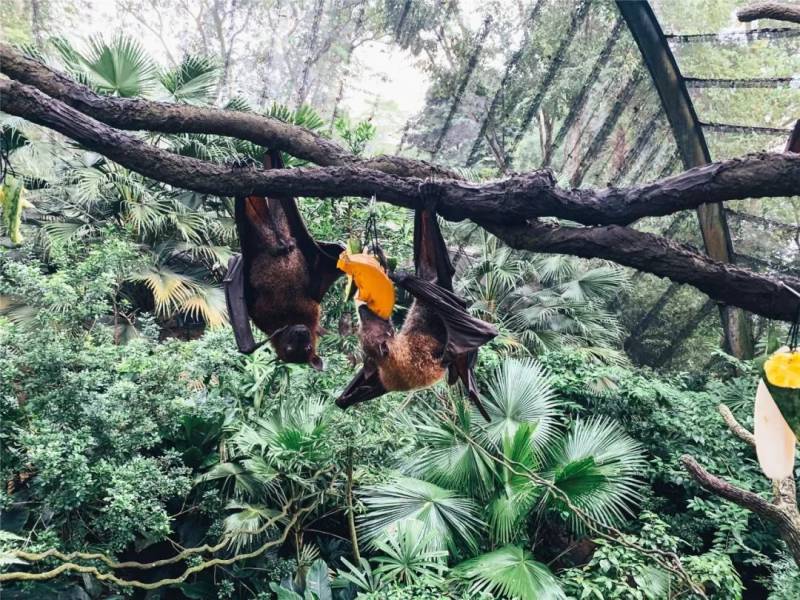 如此近距离观看蝙蝠进食且毫无遮挡阻拦设施,在国内的动物园是不可想像的。小知识,原来蝙蝠撒尿拉屎的时候是要摆正身体的。