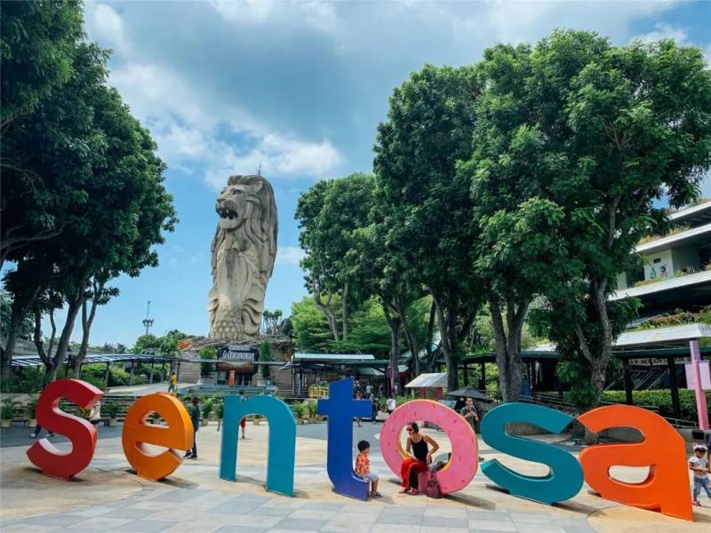 接下来介绍的是圣淘沙,这也是新加坡一个非常重要的游玩景点,但是这个点我几乎没玩。一来圣淘沙上的游玩点价格都不菲,二来我去的那天就如上图那样艳阳高照,气温急速攀升,走在圣淘沙大道没多久就汗如雨下。而且这个标志性的鱼尾狮已经关闭,即将改造。