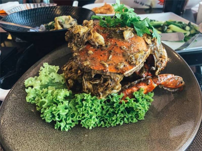 除了肉骨茶,珍宝蟹也是必尝的。我们在珍宝海鲜酒楼,这家似乎在上海也有。当地人推荐没必要选阿拉斯加雪蟹,我们到的那天服务员说阿拉斯加雪蟹半价,但仍然比斯里兰卡面包蟹贵很多,所以我们选了面包蟹。即使是便宜的面包蟹,依然肉质饱满鲜甜,绝对值得品尝。
