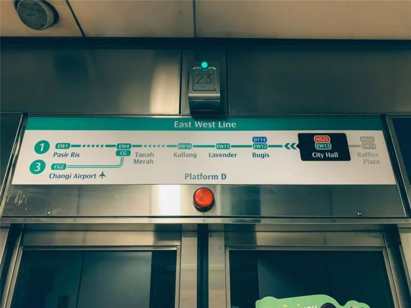 初到新加坡还是建议买一张交通卡,虽然会有5新币的押金取不出来,也当为今后可能的到来埋个伏笔吧。从机场到市区乘坐绿线即可到达。但需要注意的是,机场站是一条支线车站,乘坐地铁1站后抵达主线,要下车同站台另一侧换乘主线列车前往市区。这个有一些像上海的二号线。