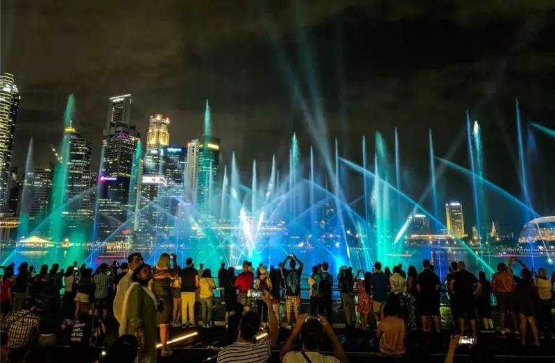 这么一圈玩下来差不多也天黑了,在滨海湾购物中心吃好晚饭,正好可以欣赏音乐喷泉秀。