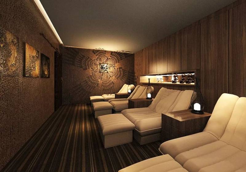 刚才介绍了4家价位在60新币上下的,现在再介绍2家奢华的。比如这家Gspa,更接近国内的水疗会所,配有冷热泳池和桑拿房,全天buffet,还能随时躺下看电影。