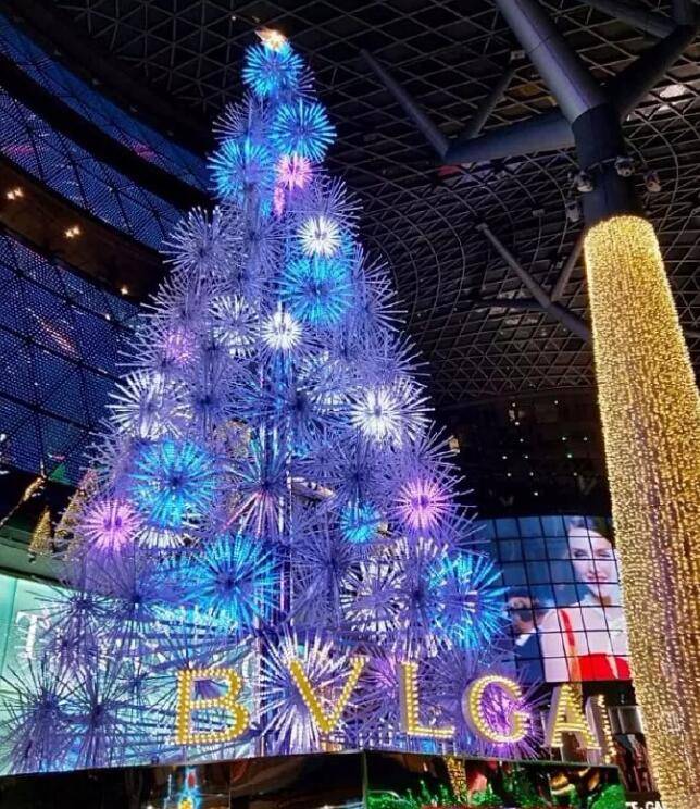 位于ION商城外两层楼高的宝格丽圣诞树,堪称火焰版的圣诞树...
