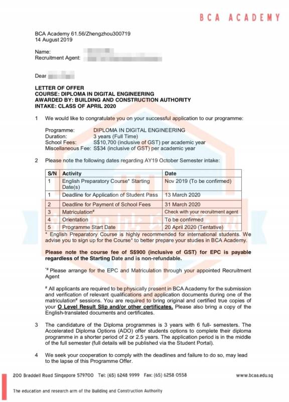 来自中国的WU同学顺利通过BCA Academy的入学考试,于2019年11月开始英文预备课程,将在2020年4月开始专业课的学习。