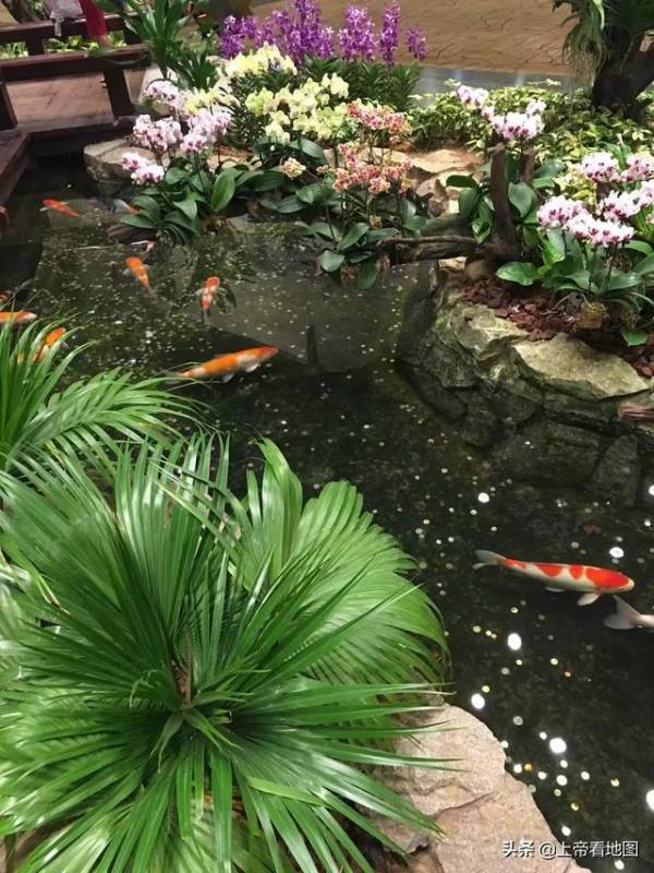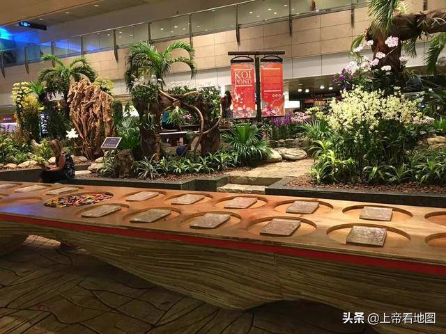 新加坡樟宜机场一角,景观鱼,有花草水木的地方,怎么能够少得了水呢