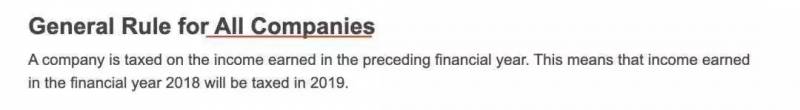新加坡的税务机构对所有公司上一财年的收入征税。比如2018年的收入将在2019年征税。