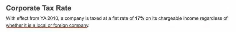 注:中国企业在新加坡注册的公司,经营利润在公司应纳税额收入范围内,使用17%的企业所得税率。