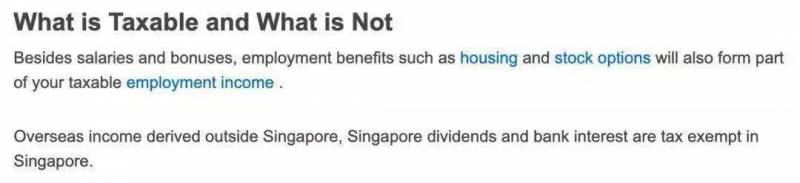 (2)在新加坡以外获得的海外收入、新加坡本地的分红、银行利息在新加坡是免税的。