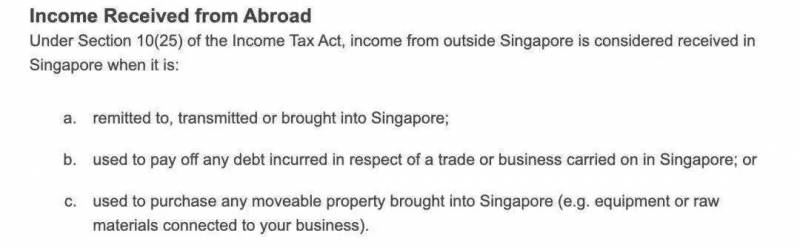 也就是说收入不是在新加坡本地产生,也没有汇入新加坡,则无需在新加坡交税。
