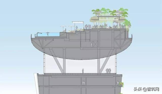 为了规避强风可能带来的影响,空中花园无边泳池的主游泳池正下方,设有四个活动接缝来抵抗风力。这些接缝平均可移动近 50cm 以保证建筑机构的稳定。