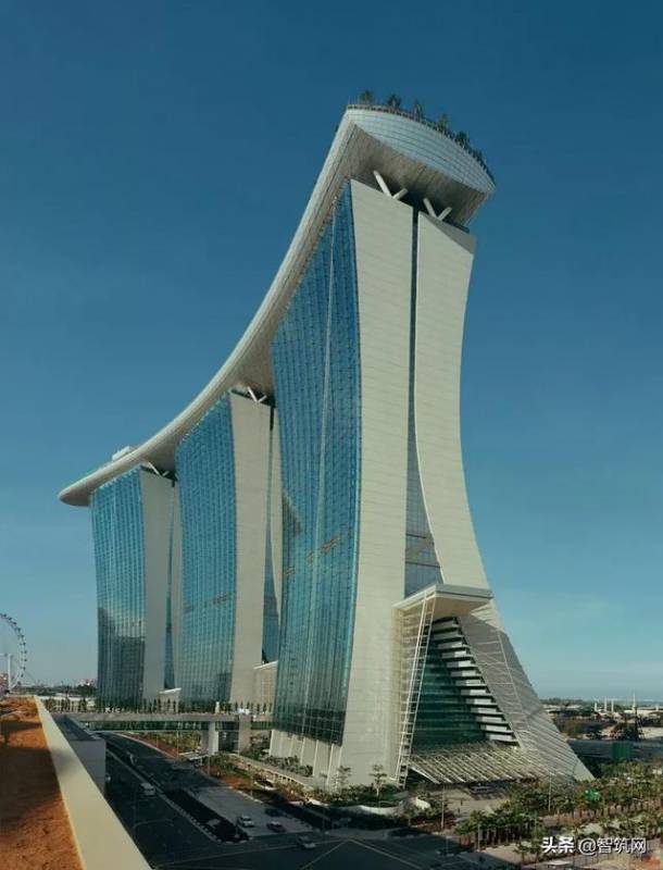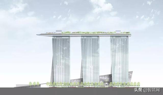 大厦顶部由号称亚洲最大的 Sands Sky Park (空中花园)连接而成,可以说,落成于 2010 年的滨海湾金沙酒店,是建筑历史上里程碑式的优秀作品。