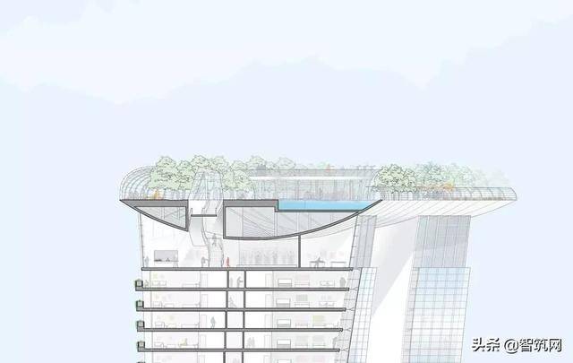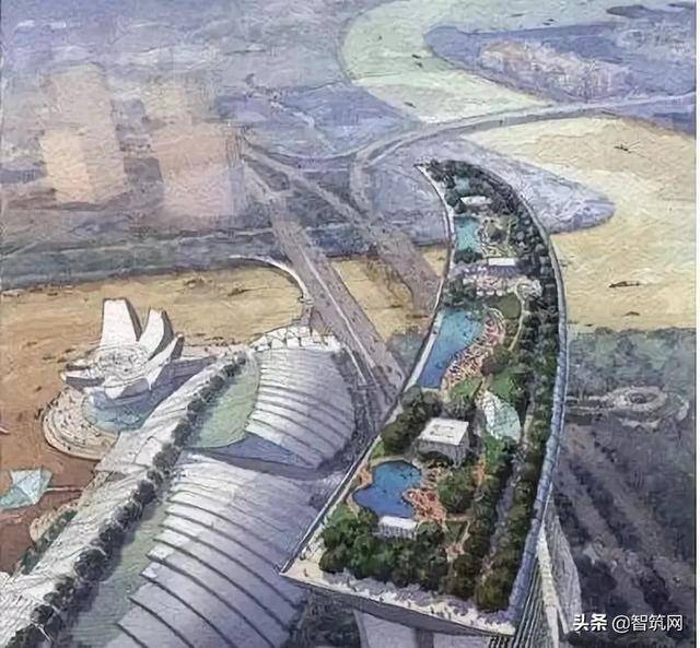 但整栋建筑的点睛之笔还是建筑顶端的空中花园。花园面积为 12000㎡,长达 340 米的露天平台,足有 3 个足球场那么大。