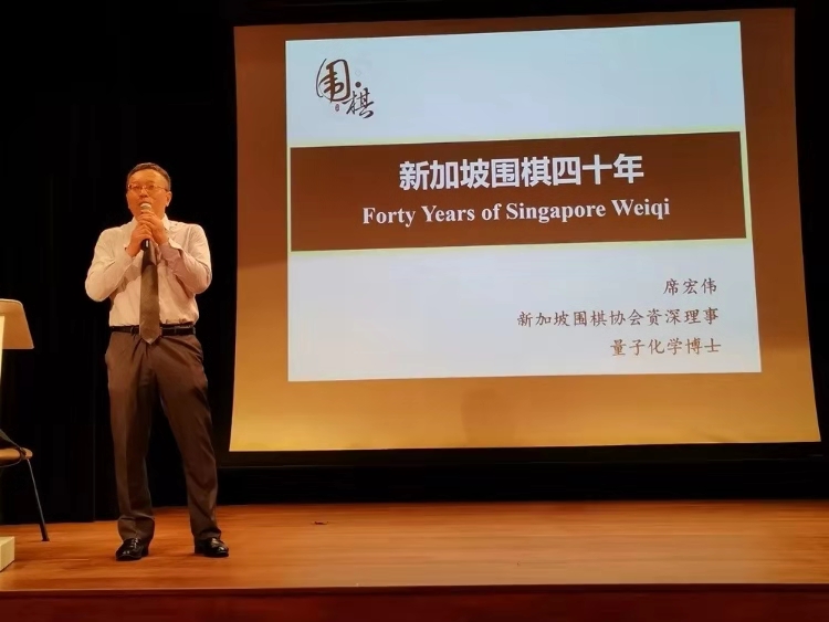 新加坡围棋协会理事席宏伟博士代表新加坡围棋协会做了《新加坡围棋40年》讲座。讲座资料充分、条理清晰、语言幽默,让大家对新加坡围棋40年来的发展历程有了充分了解。其中有许多感人事迹,说明围棋人的执著与坚持至关重要。
