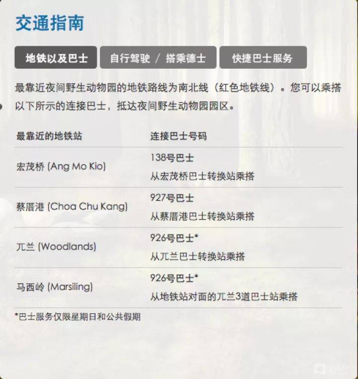前往夜间动物园的方式主要有三种,可以根据时间和费用考量选择,