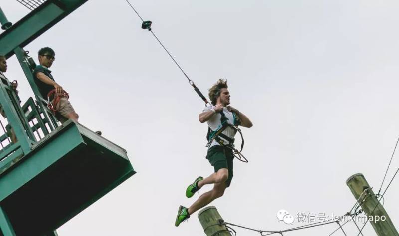 看大家玩得这么high,新加坡眼某网友跃跃欲试。可是到了现场,绑上安全带......