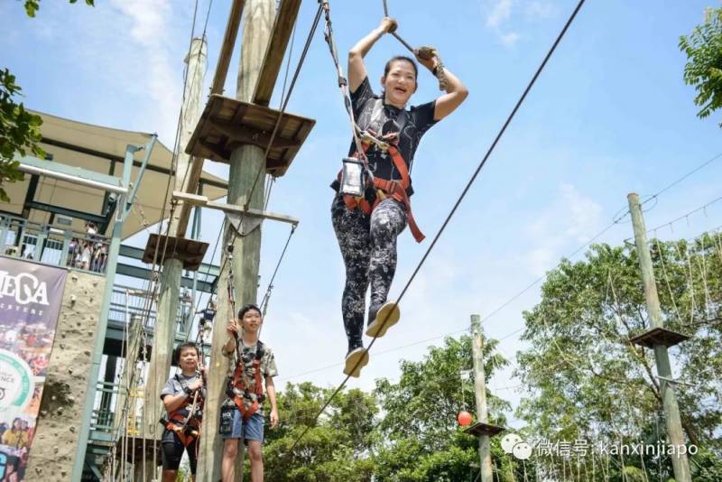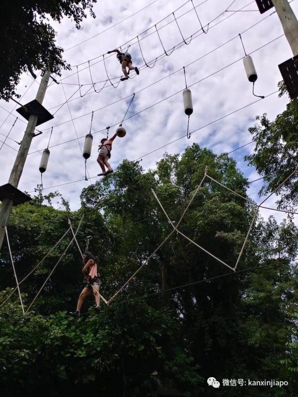 新加坡首条高空索道,钢丝、吊绳、浮桥,让你可以向杂技演员一样,以最高难度的姿势,穿梭在丛林之中~