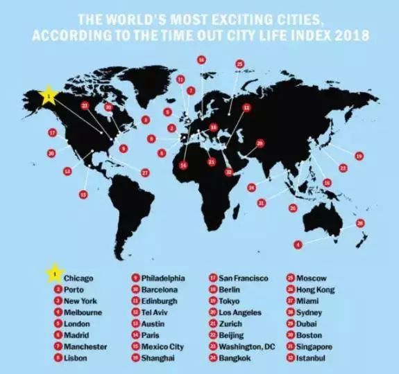 倒数第二! 不解释,先看看其他城市入榜的理由—— 美国芝加哥成为全球最令人激动的城市。它在饮食、文化、可负担能力和城市自豪度方面获得较高分数,较差方面主要为安全问题。 排在第2位的是葡萄牙波尔图(Porto),该市被列为最宜居和温馨城市,同时也是最佳的交友和寻爱城市。 第3名为美国纽约,该市在夜生活和文化方面得分较高,同时也是最多受访者今年想要到访的城市。 澳洲的墨尔本位列第4,该市在幸福感方面打败了其它城市,且因出色的酒吧及美食获得赞赏,此外,相比其它城市,墨尔本居民进行的锻炼活动较多。