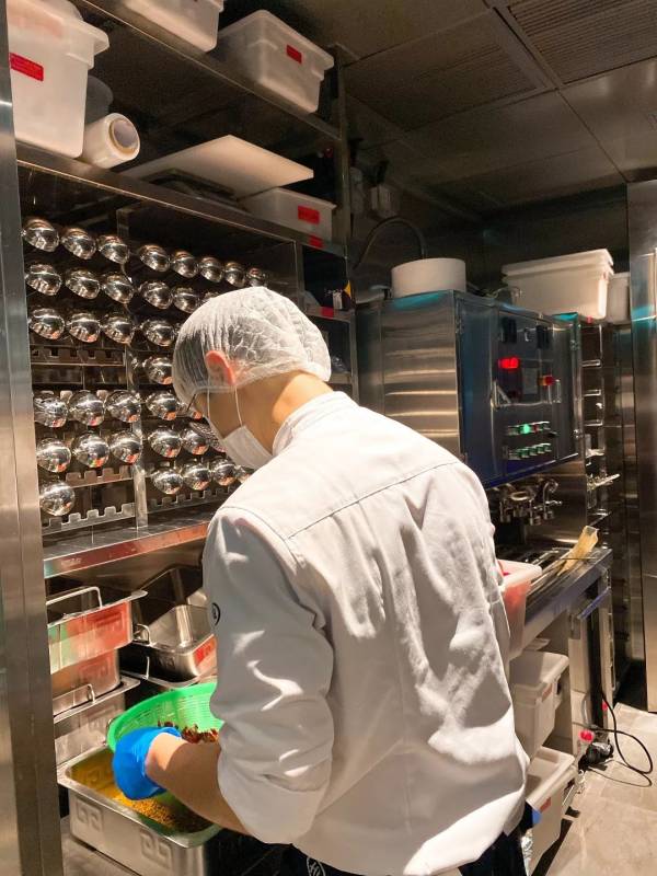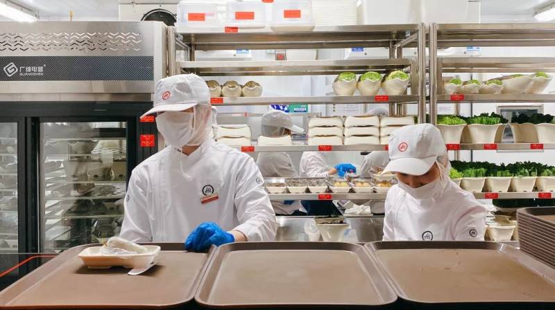 据介绍,每一个餐盘底部都有特殊的芯片,记载着菜从装盘到送到顾客的餐桌上经过了多久,每一盘都有着严格的时间掌控。
