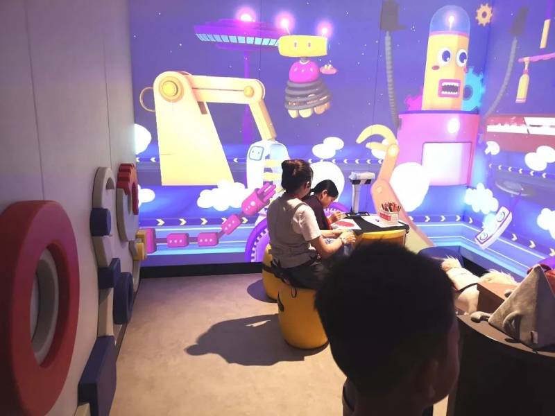 儿童游乐室有专门的工作人员在里面,墙面也是小朋友喜欢的颜色和动画,还有一些小的玩具,比起开放式的游乐场所,这边既安全又放心。