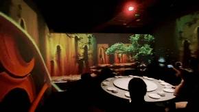 灯光投影秀长达5分钟,你可能觉得这5分钟很长,但是5分钟的效果远远超出了我们的想像。一个餐饮公司,硬是作出了影视公司的效果,小编是怕海底捞要进军影视圈了吧!墙面上的投影更是伴随着用餐有四种模式不停的播放。