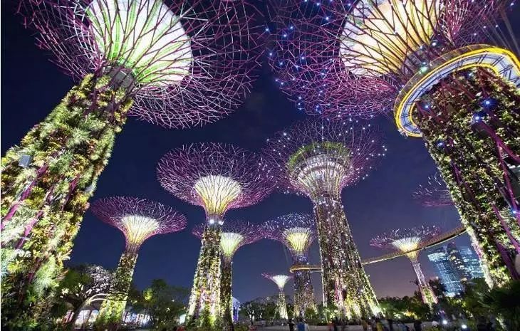 滨海湾花园最引人注目的就是分布于公园各处的18棵“擎天大树”,游客可选择购票登上高达22米的连接在两棵“擎天大树”之间的空中走道,鸟瞰滨海湾花园、滨海湾金沙、摩天观景轮以及其他新加坡具有标志性建筑。