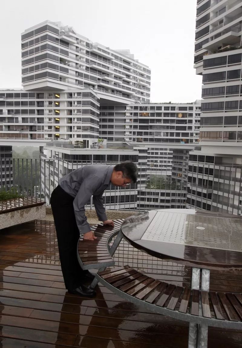 设计师在采光和通风设计上落足心思,每栋建筑的角度配合南北的最佳方向,减少西照阳光直射。空中花园有一个圆桌,座位可取走,让人把轮椅推近桌子。
