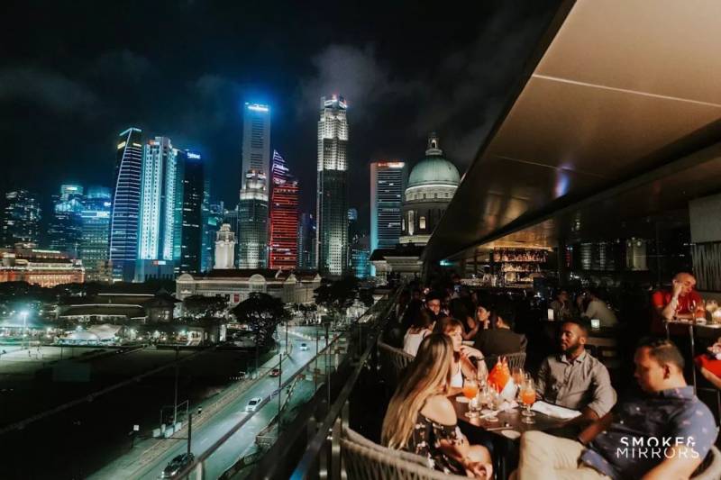 这里的酒吧区是露天座位,可以尽览新加坡市中心的夜景。吹着微风,品尝调酒师精心搭配的鸡尾酒再听着现场表演,想想就很惬意呢!另外,Smoke & Mirrors 也有新年特别活动,想去的小伙伴们赶紧安排起来吧!