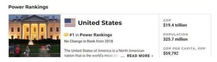近日,U.S.News(《美国新闻与世界报道》)发布的2019年度全球最强大国家榜单。