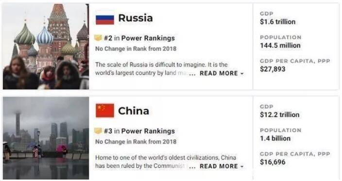 紧随美国后面的两个国家分别是俄罗斯和中国,这俨然已是各大榜单排名的“固定搭配”了。