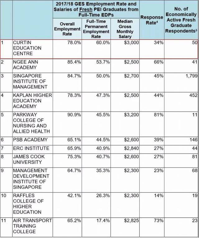 根据新加坡私立教育理事会(CPE)发布的最新的私立大学就业调查报告显示,80.7%的新加坡私立院校毕业生能在毕业6个月内找到工作(包括全职、兼职、短期、自由职业等),其中全职就业率为48.2%,较前一年度有所上涨;全职月薪中位数为2650新币,和前一年度基本持平。