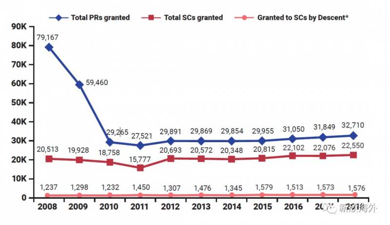 2008年至2018年新加坡绿卡及公民获批人数
