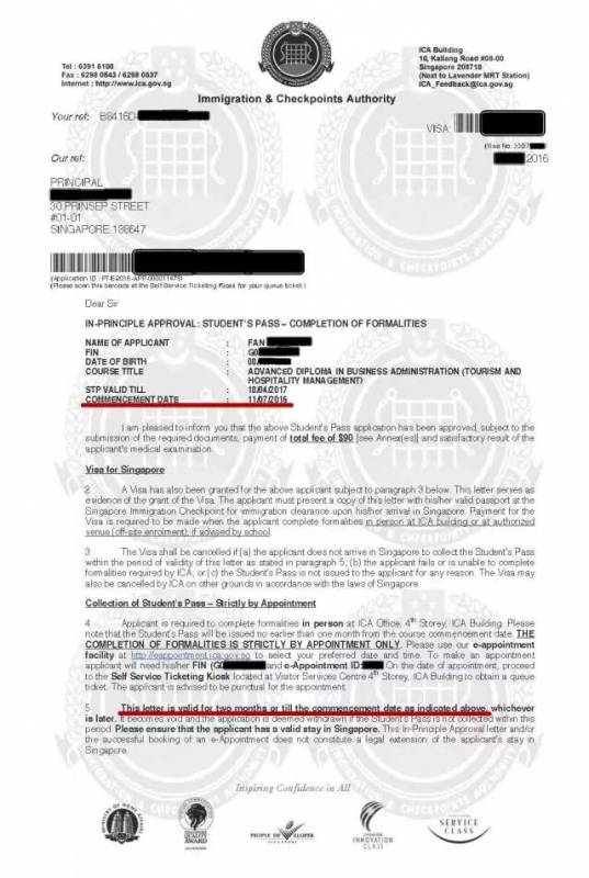 所有想要前往新加坡就读全日制课程的国际生,需要前往移民与关卡局(ICA) 递交学生准证及签证申请。