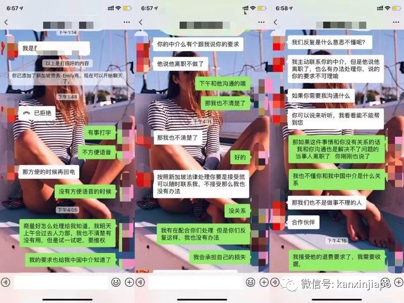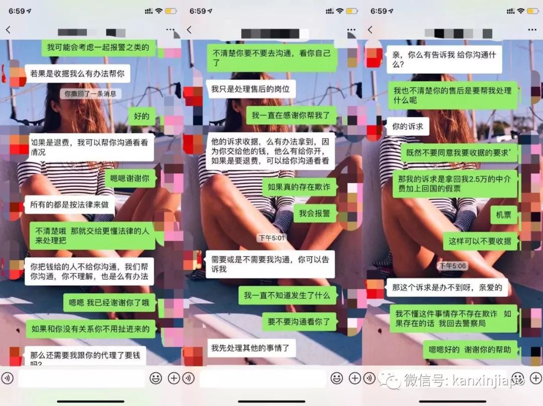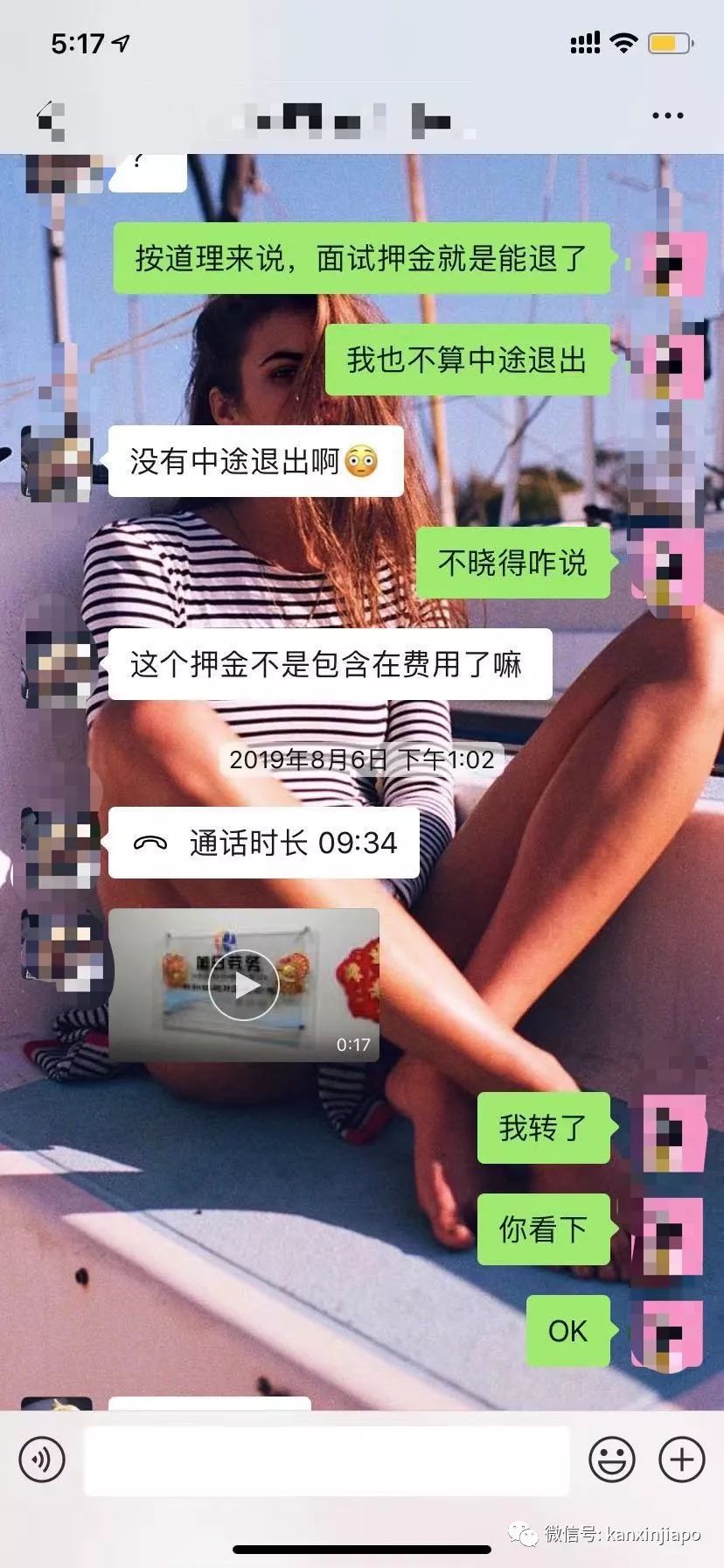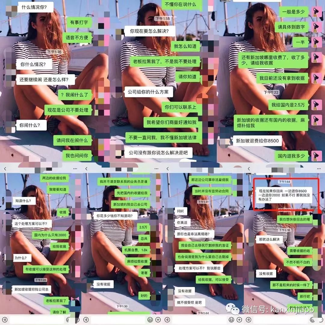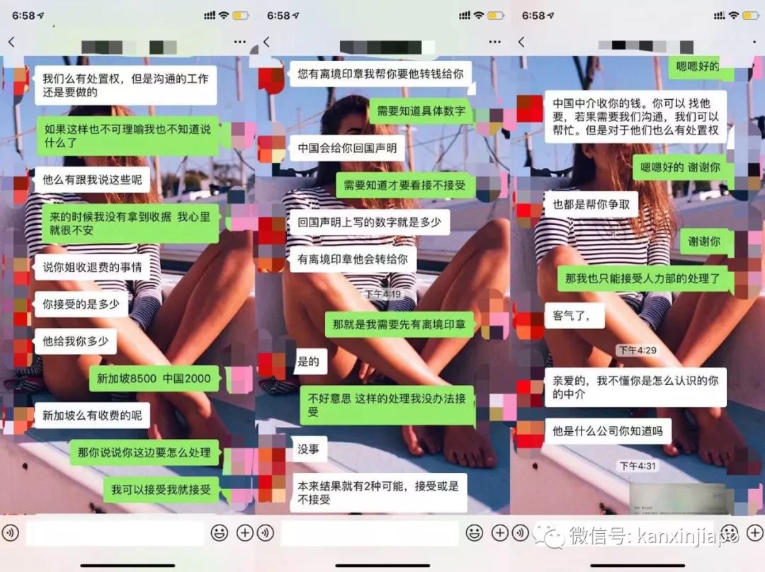 后来,断断续续有在和公司还有中国的中介协商,中介说可以在新加坡退我8500人民币,中国退给我2000人民币,我说可以接受这样的处理,但是需要中国和新加坡双方的收据,需要收据的要求被拒绝了,所以我们的沟通也是没有结果。