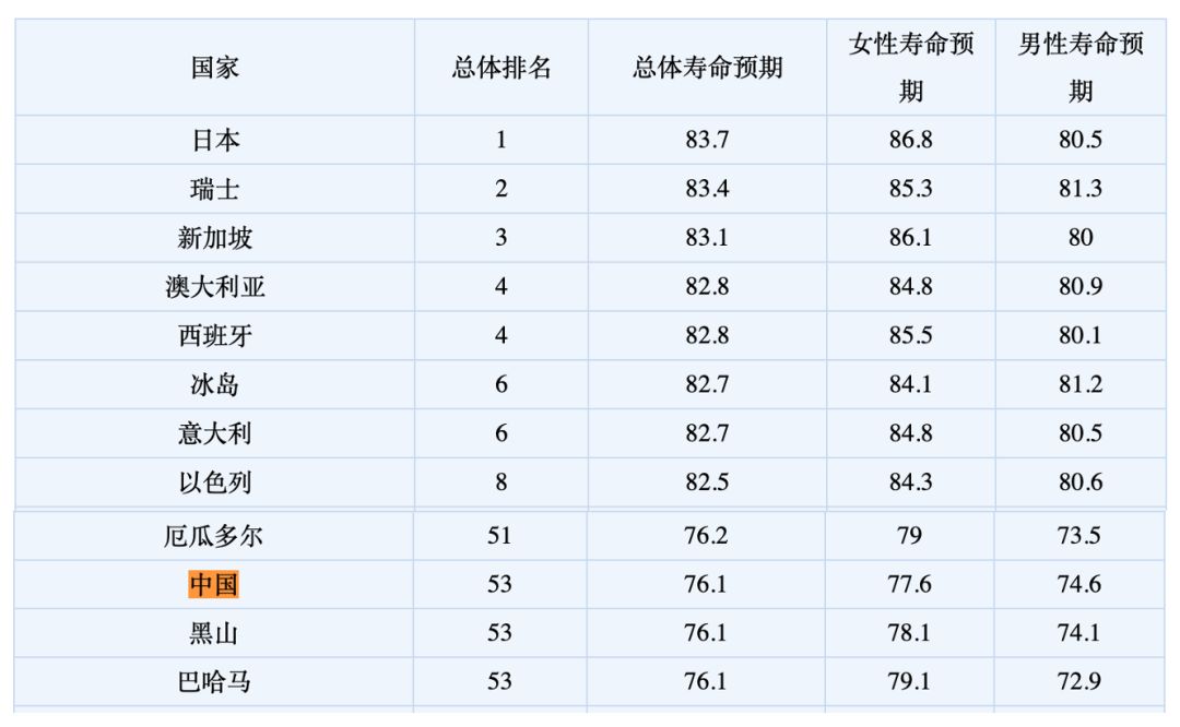 而在Bloomberg对各国健康指数进行排名中我们可以看到新加坡排世界第8,与一系列高福利国家持平。我国在榜单中排第52位,与一众发达国家还是有不小的差距。
