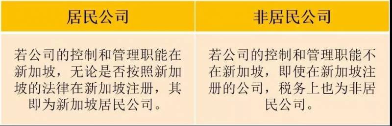 无论是本地企业还是外国企业,都必须对在新加坡境内取得的收入以及在新加坡收到的海外收入依法纳税。新加坡根据公司的控制和管理职能是否在新加坡,对纳税人分为居民公司和非居民公司两类。