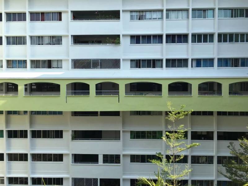 事实上,不拘是我住的社区,这座城市大大小小的组屋社区都此起彼伏得经历著这样的易容术。重新粉刷立面是HDB(Housing Development Board,狮城“住建部”,80%以上居住地产的开发者)的例行工作之一。