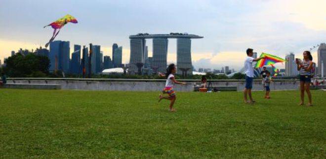 在滨海湾金融中心和The Sail之间有一片大草坪,这里能够给大家休闲地看烟花。