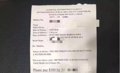 曾经有国内的小伙伴在社交平台上晒,自己一个烟头,就被罚了300新元!就是人民币1500多元...
